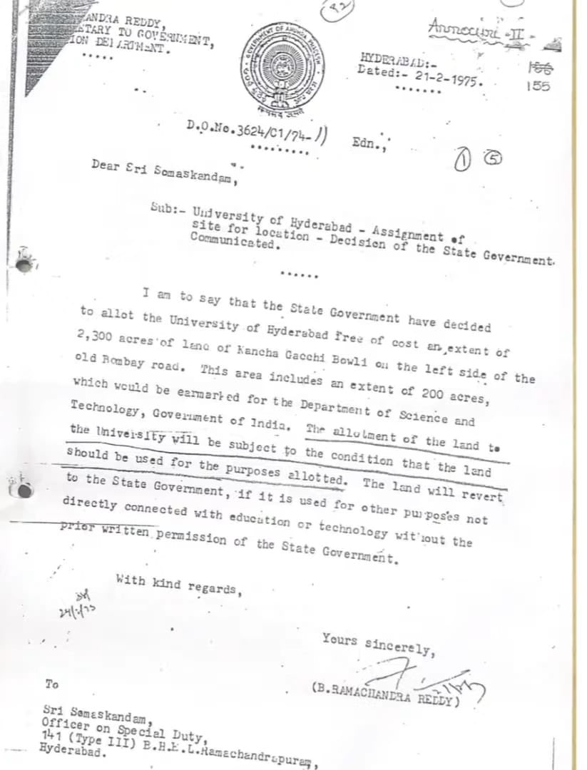 HCU letter to government of telangana