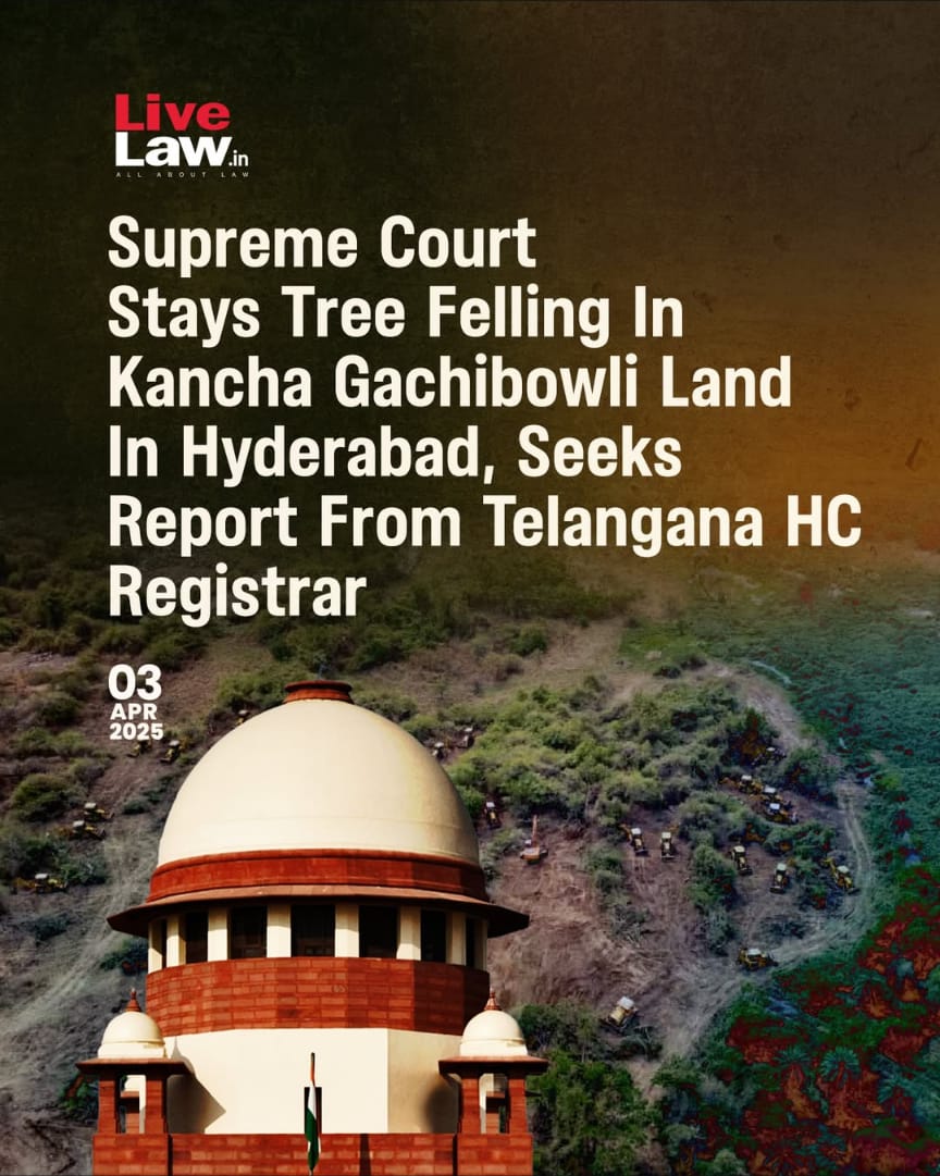 కంచ గచ్చిబౌలి లోని హెచ్‌సీయూ సమీపంలో ఉన్న భూముల్లో 400ఎకరాల్లో జరుగుతున్న చెట్ల తొలగింపులపై సుప్రీంకోర్టు సీరియస్ అయ్యింది. దేశవ్యాప్తంగా చర్చనీయంశమైన ఈ వ్యవహారాన్ని సుప్రీంకోర్టు ధర్మాసనం సుమోటో గా స్వీకరించి విచారణ చేపట్టింది. కంచ గచ్చిబౌలిలో 400 ఎకరాల్లో చెట్లు నరకడం, జంతువులను హింసిస్తూ పర్యావరణానికి నష్టం చేస్తున్నారని ఆవేదన వ్యక్తం చేసింది జస్టిస్ బీ.ఆర్ గవాయ్, జస్టిస్ అగస్టిన్ జార్జ్ ధర్మాసనం.