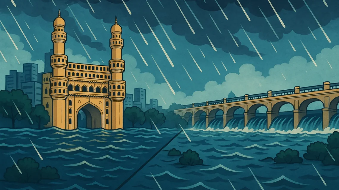ఇక తెలంగాణలోనూ పరిస్థితి భయానకంగా మారిందిజయశంకర్ భూపాలపల్లి, ములుగు, భద్రాద్రి కొత్తగూడెం జిల్లాల్లో వర్షపాతం రికార్డు స్థాయికి చేరిందివాగులు, చెరువులు పొంగిపొర్లి పలు గ్రామాలు ముంపుకు గురయ్యాయి. హైదరాబాదులోనూ రహదారులపై నీరు నిలిచి వాహనదారులు ఇబ్బందులు పడుతున్నారు. చెట్లు కూలిపోవడం, విద్యుత్ సరఫరా అంతరాయం కలగడం వల్ల నగర జీవనం అస్థవ్యస్థమైంది.